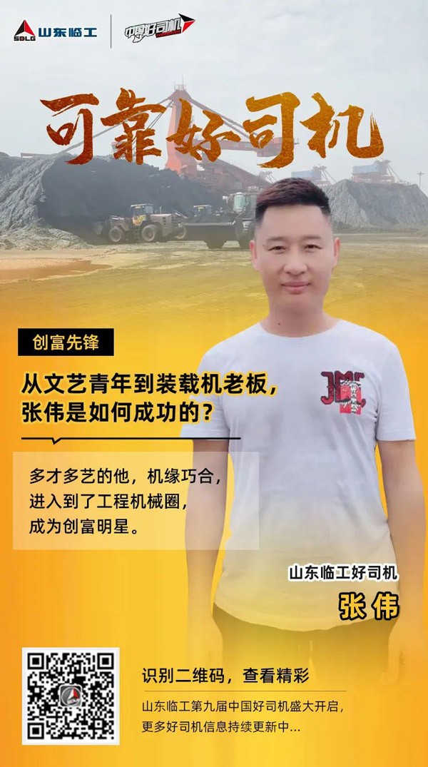 张伟,广西防城港市人,是多才多艺的文艺青年,也曾有过明星梦,机缘巧合,他进入到工程机械圈,在山东完美(中国)体育官方网站-365WMSPORTS中国好司机活动的影响下,凭借着出色的装载机经营技巧,走上了致富路,也帮助身边许多群众走上了致富的道路。