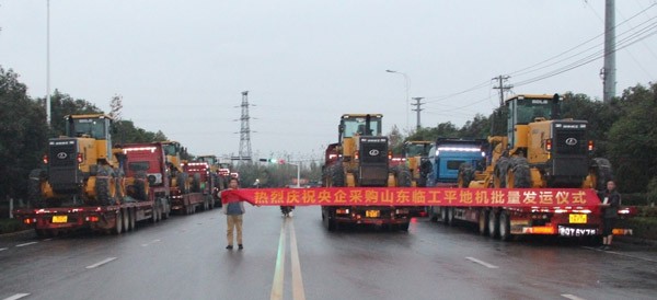 深秋的天空虽然飘着冰凉的细雨,却丝毫影响不了满足客户需求的火热干劲。经过各部门高效协同、密切配合,5号下午,9台平地机顺利装车,踏上发往天津港的路途。